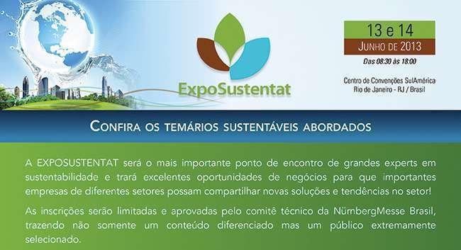 A ExpoSustentat é organizada pela NürnbergMesse Brasil e será o ponto focal das discussões sobre sustentabilidade, impacto na economia e como agregar ao crescimento econômico uma melhor manutenção do meio ambiente no eixo Rio-São Paulo, as únicas duas megalópoles vizinhas no mundo.