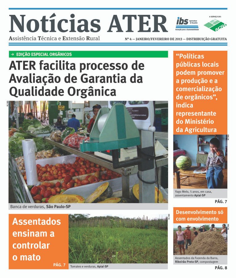 Jornal da ATER, Assistência Técnica e Extensão Rural, traz editorial inteiro voltado paras as práticas orgânicas em assentamentos do INCRA