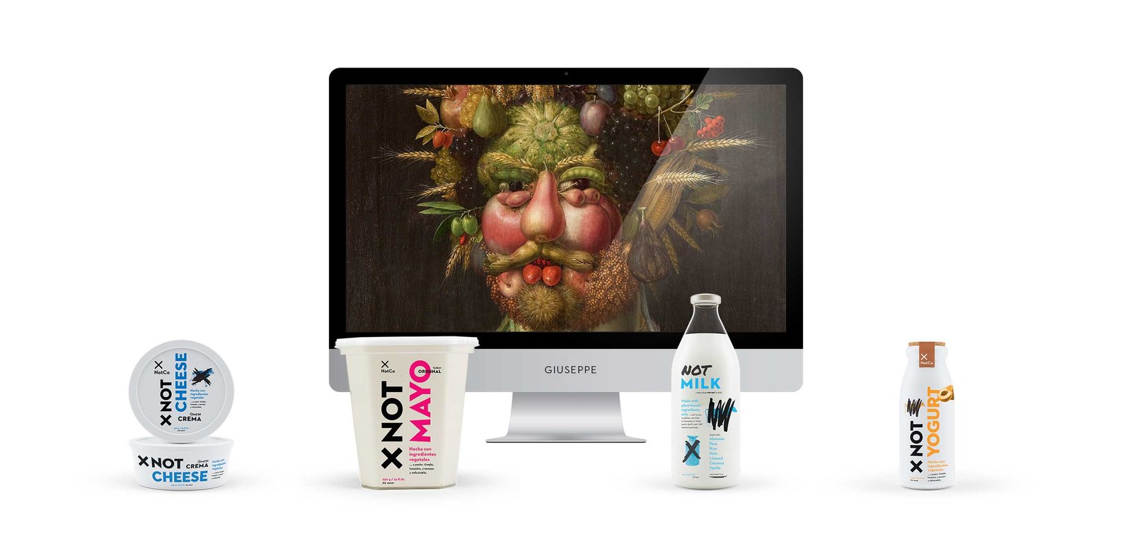 Além do condimento, a empresa produz também o NotCheese, NotMilk e NotYogurt, alimentos que tradicionalmente levam ingredientes de origem animal. Apesar dos produtos, a empresa trata como seu principal ativo o programa Guiseppe, que tem base de dados de sete mil plantas e utiliza inteligência artificial para encontrar fórmulas para criar comidas plant-based. A maionese da marca, por exemplo, é feita baseada na molécula do grão-de-bico.