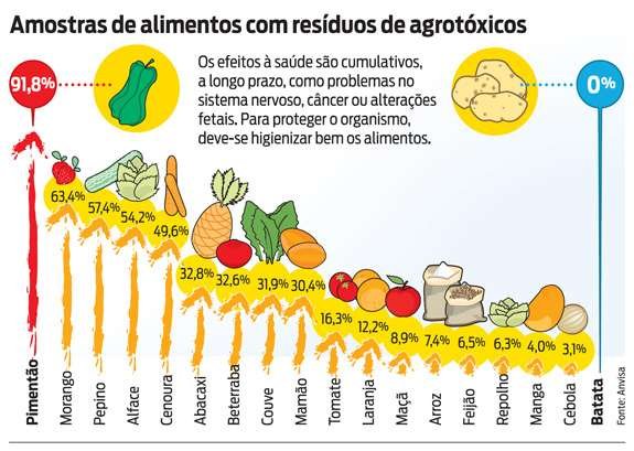Um estudo realizado pela Universidade Federal do Mato Grosso, em parceria com a Fundação Oswaldo Cruz, constatou a presença de 223 princípios ativos de agrotóxicos nos alimentos, dentre os 500 existentes.